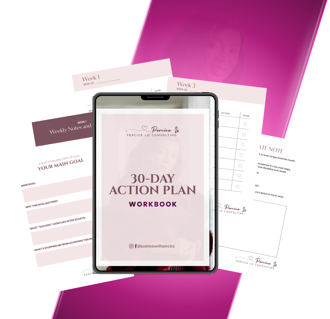The 30-Day Action Plan Workbook is your personal accountability partner — designed to help you start, show up, and stay consistent.